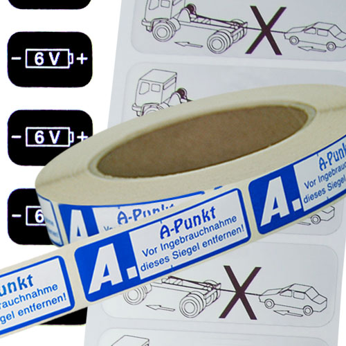 Sicherheitskennzeichen liefern wir ab Lager, Abverkauf vorbehalten.